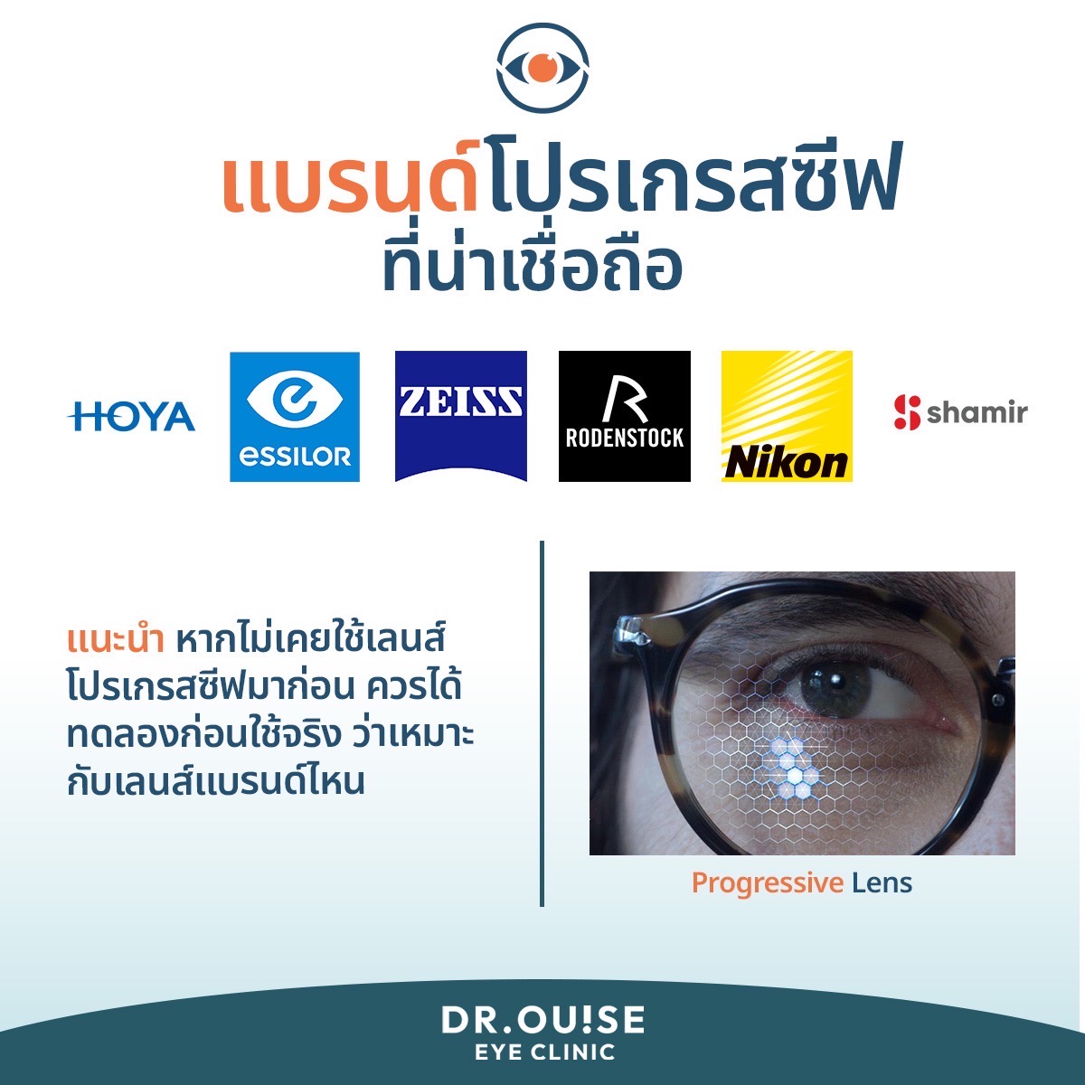 สำหรับผู้ที่สนใจตัดแว่นโปรเกรสซีฟ ขอแนะนำที่คลินิก Dr.Ouise Eye Clinic ร่วมกับร้านแว่นตา THE NEXT ด้วยประสบการณ์กว่า 77 ปี นำโดย หมออุ๊ย แพทย์หญิง วชิรา สนธิไชย จักษุแพทย์เฉพาะทางด้านการแก้ไขปัญหาสายตาและเลนส์โปรเกรสซีฟ พร้อมด้วยทีมนักทัศนมาตรผู้เชี่ยวชาญ ที่ผ่านมาตรฐานระดับสากล บริการตรวจวัดสายตาอย่างละเอียดแม่นยำ ตรวจสุขภาพตา ตรวจคัดกรองโรคตา ดูแลใส่ใจในทุกขั้นตอนการตัดแว่นโปรเกรสซีฟเฉพาะแต่ละบุคคล