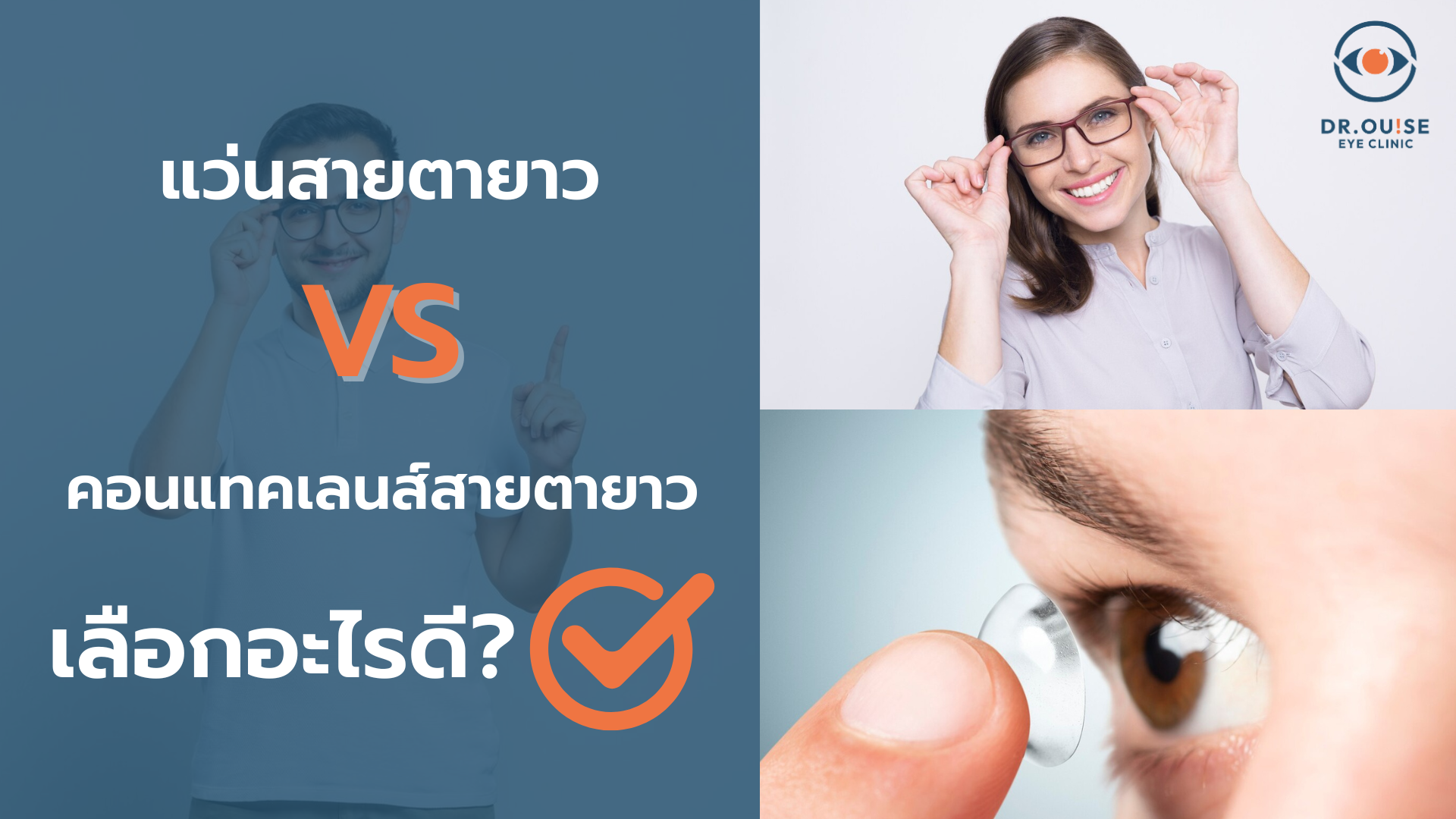 ระหว่างแว่นสายตายาว กับ คอนแทคเลนส์สายตายาว เลือกอะไรดี? ทั้งนี้ขึ้นอยู่กับปัญหาสายตาและสุขภาพตาของแต่ละบุคคล รวมไปถึงความสะดวกสบายในการใช้งาน เพราะบางคนอาจมีปัญหาสายตาที่ตัวเลนส์ผลิตได้และมีสุขภาพตาที่ดีขึ้นจริง แต่เมื่อลองใส่แล้วรู้สึกไม่ชอบ เนื่องจากเป็นผู้ที่มีดวงตาเล็ก ที่ทำให้การใส่คอนแทคเลนส์ไม่ค่อยสะดวก ในกรณีนี้การพิจารณาเลือกแว่นสายตายาว ก็เป็นอีกหนึ่งทางเลือกในการแก้ไขปัญหาสายตา ที่ตอบโจทย์มากเช่นกัน