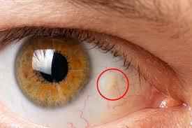 2. นอกจากนี้ยังพบว่ามีต้อลมในตาทั้งสองข้าง ซึ่งต้อลมมักไม่เป็นอันตรายแต่อาจทำให้เกิดการระคายเคืองได้บ้างแนะนำเมื่อมีอาการระคายเคืองให้หยอดน้ำตาเทียมเพื่อช่วยให้ความชุ่มชื้น และใส่แว่นกันแดดเพื่อป้องกันแสงยูวีที่เป็นสาเหตุหลักที่ทำให้เกิดโรคต้อลมได้