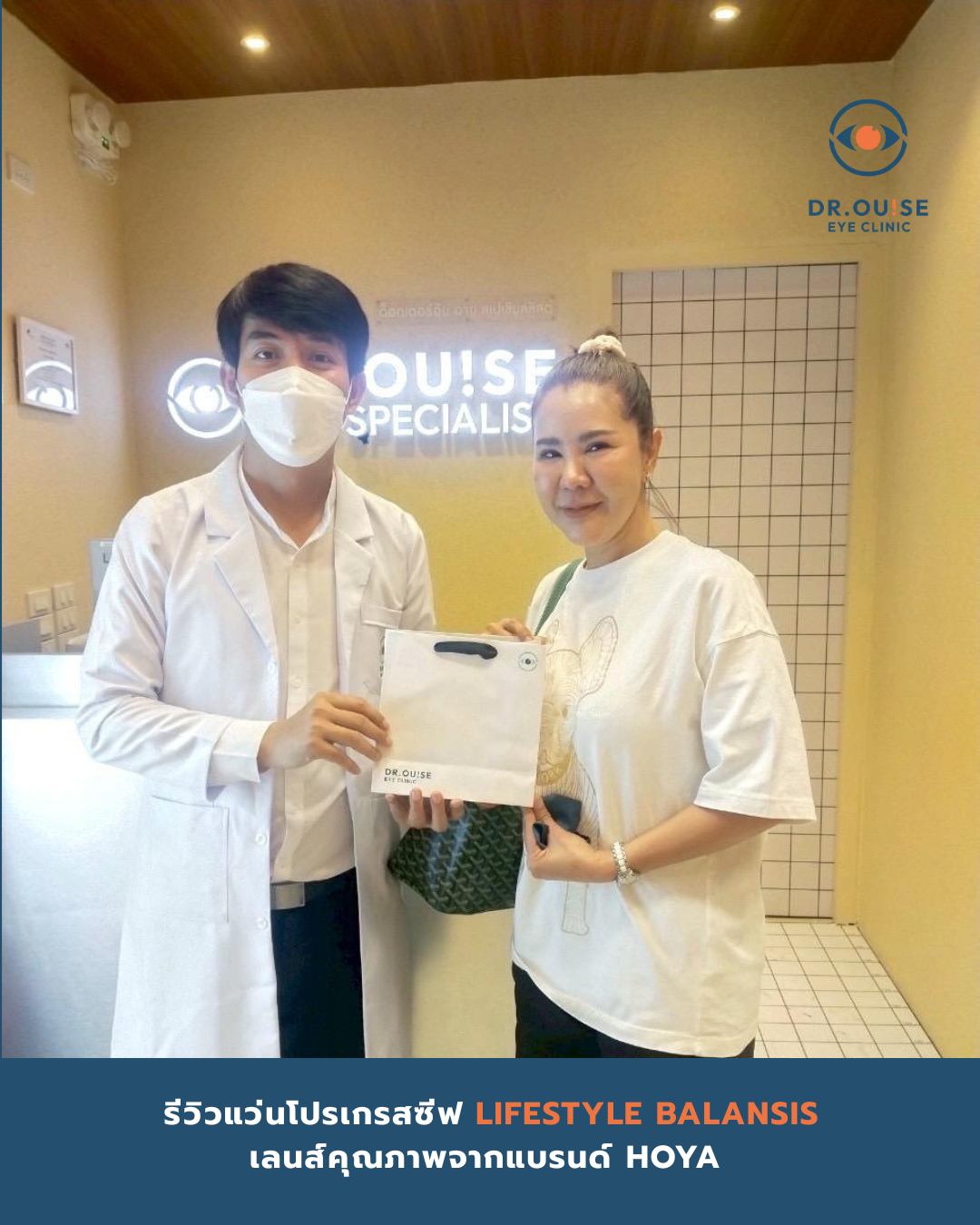เนื่องจากคนไข้ไม่ได้นำแว่นเดิมมา คุณหมอสายตาและทีมงานของร้าน DR.OUISE จึงได้มีการอธิบายการใช้โปรเกรสซีฟให้คนไข้เข้าใจหลักการใช้งาน นอกจากนี้ทางร้านมีเลนส์ทดลองโปรเกรสซีฟยี่ห้อต่างๆ ให้คนไข้ได้ทดลองความแตกต่างของโครงสร้างในแต่ละยี่ห้อ เพื่อให้คนไข้ได้โครงสร้างโปรเกรสซีฟที่เหมาะสมกับตัวเองมากที่สุด โปรเกรสซีฟไม่ได้ใช้งานยากอย่างที่ทุกคนคิด หากว่ามีการวัดสายตา จ่ายค่าสายตาที่ถูกต้อง การวัดจุดประกอบที่ละเอียดแม่นยำ และทำการจ่ายเลนส์ที่มีโครงสร้างเหมาะสมกับค่าสายตาและการใช้งานต่างๆของลูกค้า การใช้งานโปรเกรสซีฟก็จะประสบความสำเร็จสูงขึ้นอีกด้วย