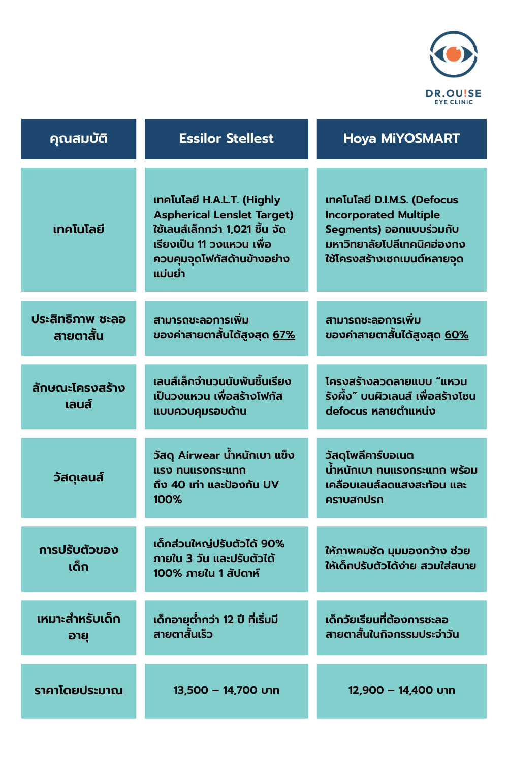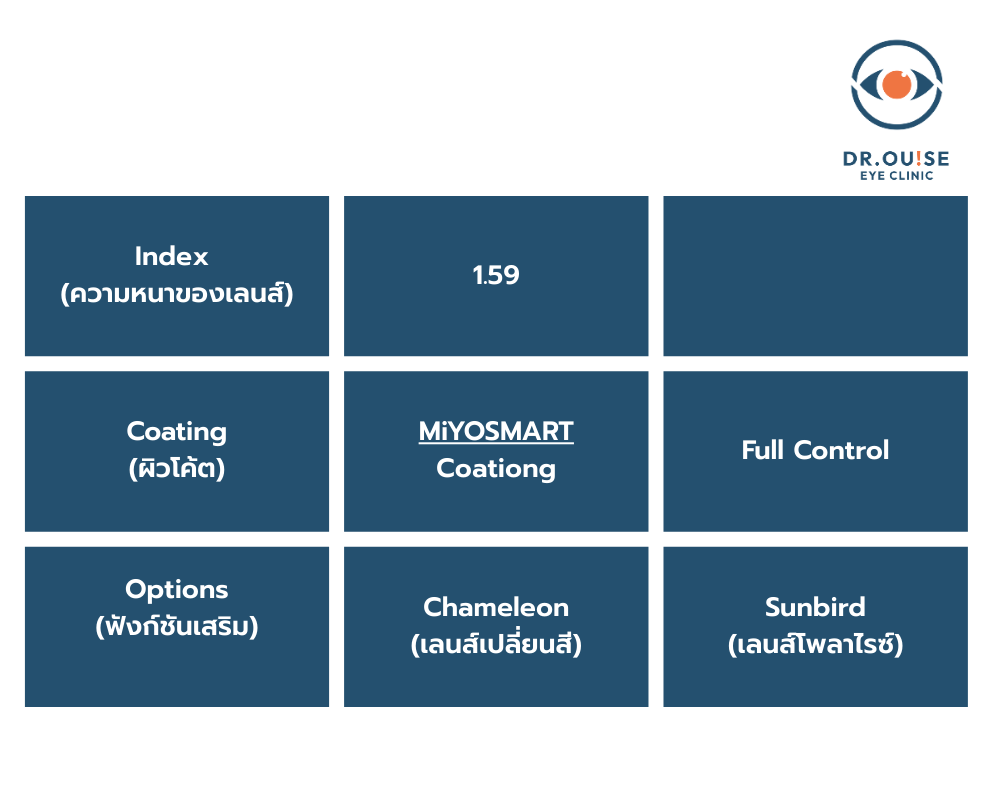 - ตารางเปรียบเทียบแว่นชะลอสายตาสั้นในเด็ก