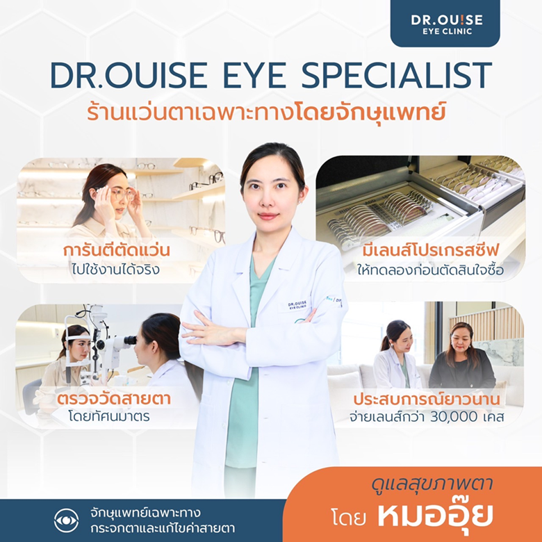 หากคุณอยากตัดเลนส์โปรเกรสซีฟแบบมั่นใจ ลังเลว่าจะตัดแว่นโปรเกรสซีฟที่ไหนดี หมออยากชวนให้แวะเข้ามาปรึกษาก่อนตัดสินใจ ที่ Dr.Ouise Eye Clinic (หมออุ๊ย) คลินิกศูนย์เลนส์แว่นตาโปรเกรสซีฟและเลนส์ชะลอสายตาสั้นในเด็ก พร้อมให้บริการโดยจักษุแพทย์ นักทัศนมาตร และผู้เชี่ยวชาญ ที่คอยให้คำแนะนำอย่างละเอียด เพื่อให้การตัดเลนส์โปรเกรสซีฟตอบโจทย์สายตา สุขภาพตา และการใช้งานในระยะยาว