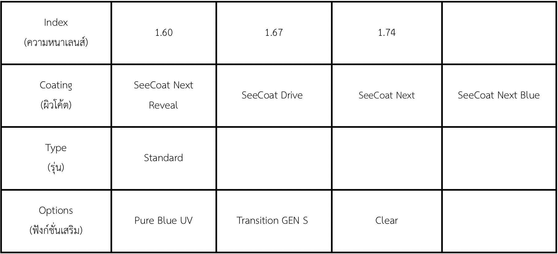 - เหมาะสำหรับผู้ที่มีค่าสายตาน้อยถึงปานกลาง ต้องการเลนส์คุณภาพดีในราคาที่จับต้องได้