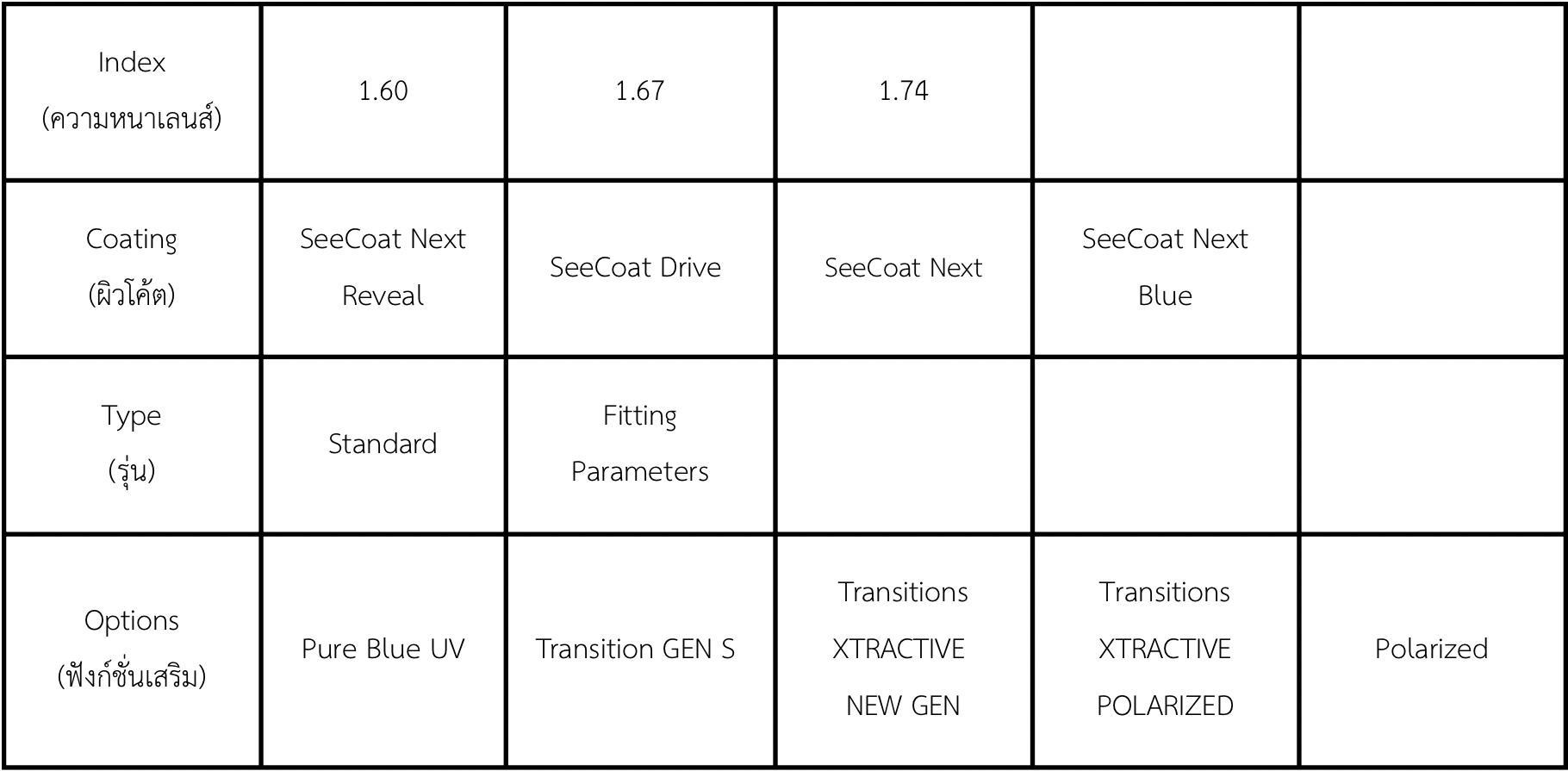 - เป็นเลนส์ชั้นเดียว (Single Vision) ที่ผลิตแบบ Custom ตามขนาดกรอบแว่นและค่าสายตาของแต่ละบุคคล รวมถึงการคำนวณ Binocular Balance ทำให้ได้ภาพที่สมจริงและนุ่มนวลในลานสายตาด้านข้าง